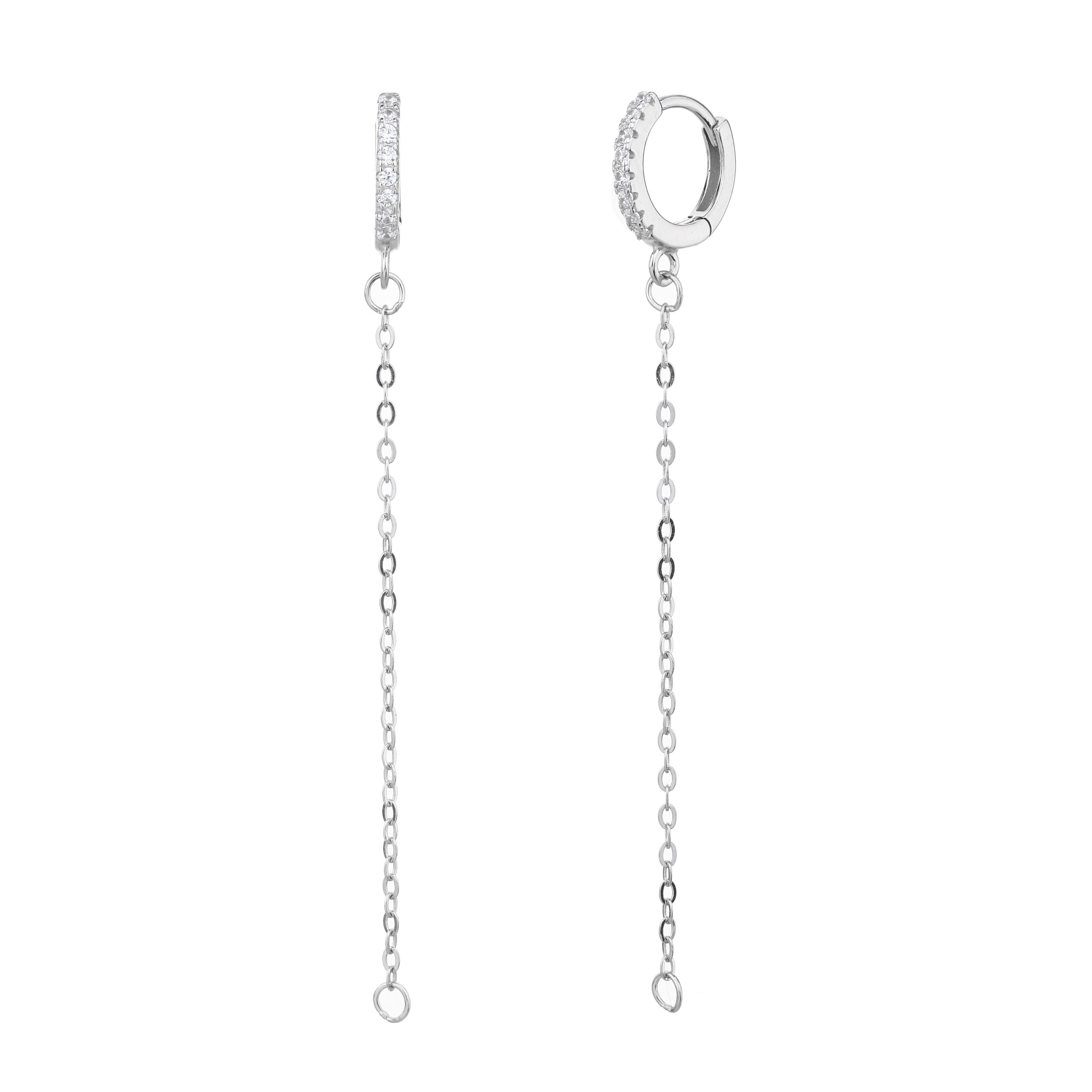עגיל חישוק משובץ עם אבני זרקון זוהרות, מעוצב עם שרשרת נתפסת שמוסיפה לו נגיעות של אלגנטיות וייחודיות.