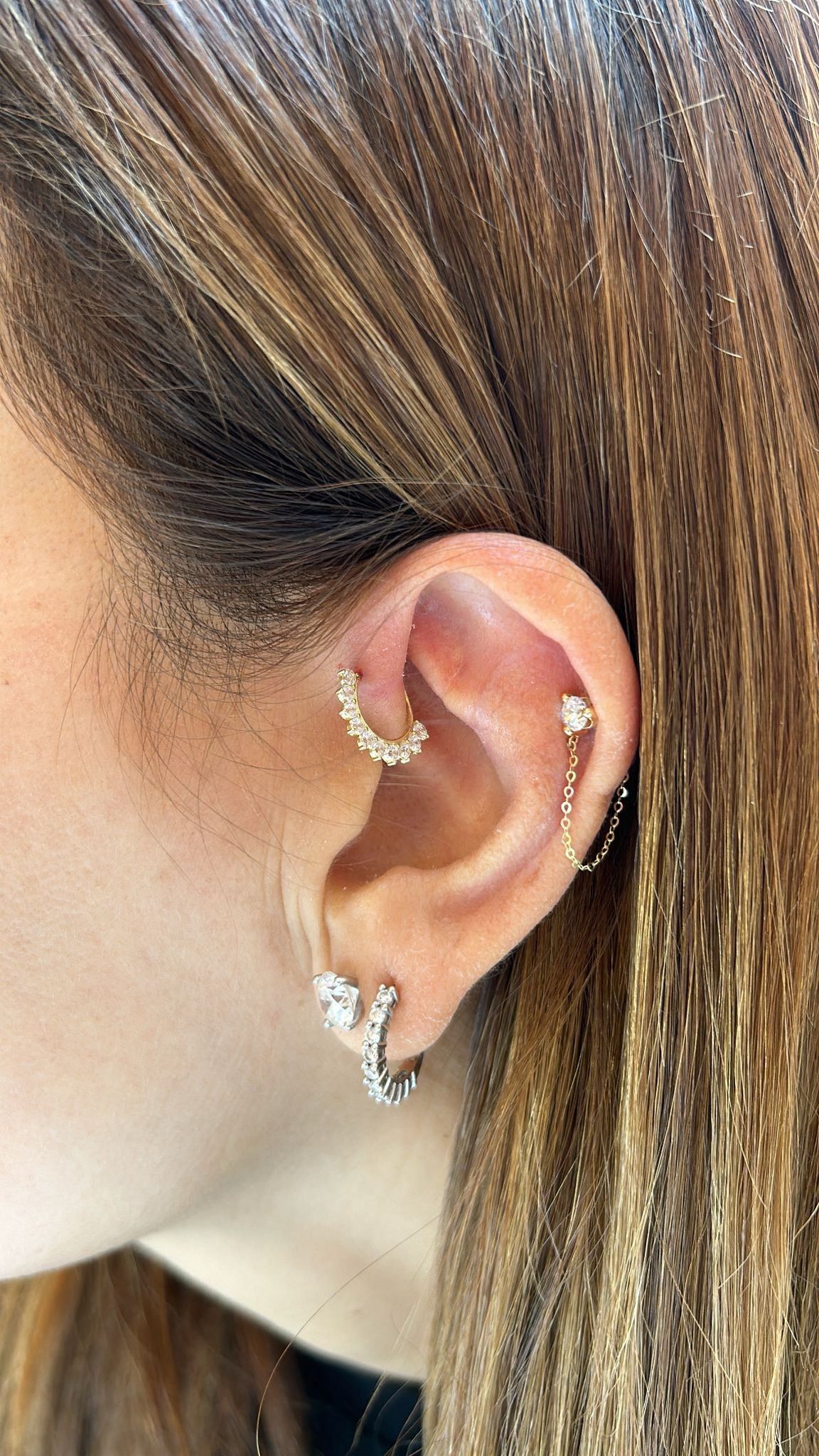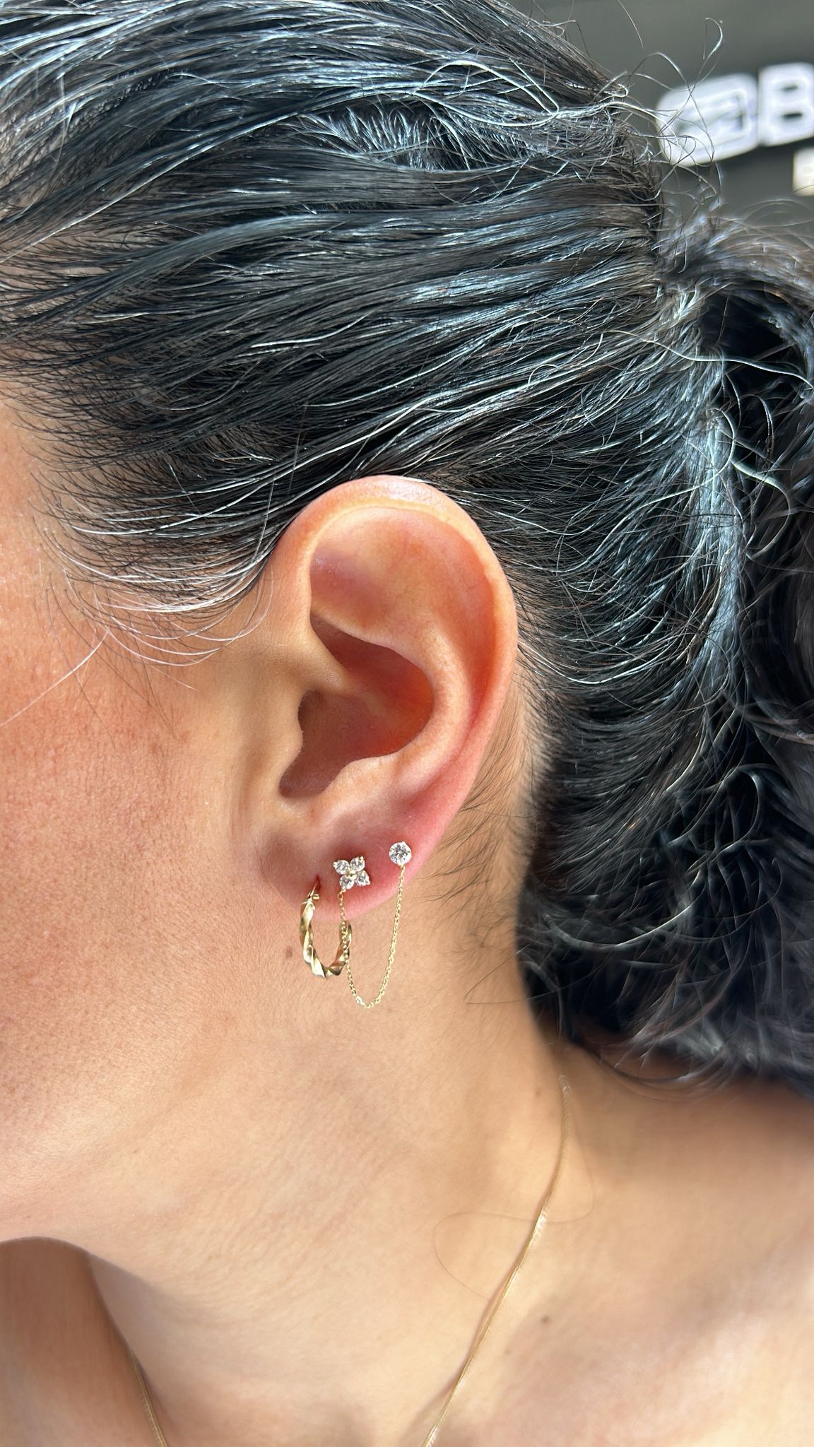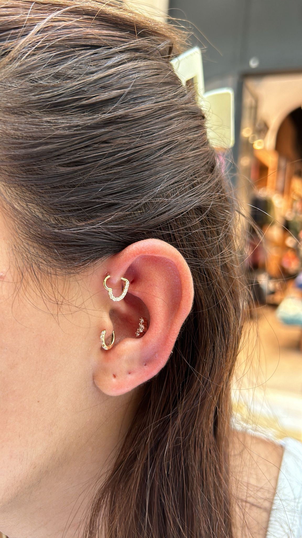 הניקוב מתבצע בשיטת קליפס חד־פעמי וסטרילי, עם עגילי זהב 14K בלבד, כולל אפשרות לניקוב עם יהלומים אמיתיים.