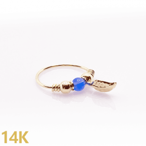 פירסינג חישוק זהב 14K כדור אופל ונוצה
