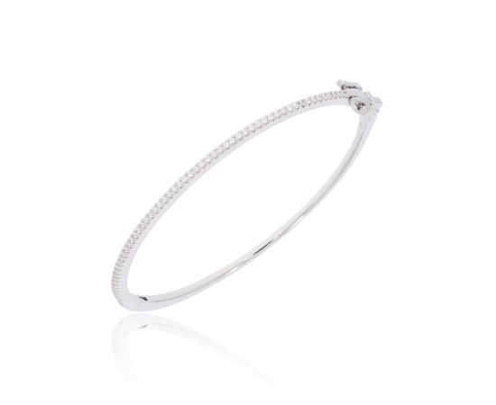 צמיד בנגל קשיח מכסף טהור 925 בעיצוב אלגנטי ועדין, משובץ זרקונים לבנים זוהרים המקנים מראה יוקרתי ומתוקתק לכל הופעה.