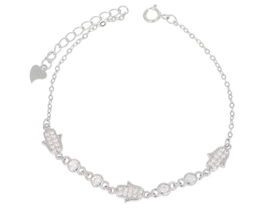 צמיד החמסות מוסיף לכל לוק שילוב של סטייל ומשמעות. לאורך הצמיד יושבות שלוש חמסות קטנות משובצות זרקונים עדינים שמעניקים ברק רך ומראה אלגנטי. ביניהן מופיעות אבנים עגולות שמוסיפות תאורה ונוכחות עדינה.