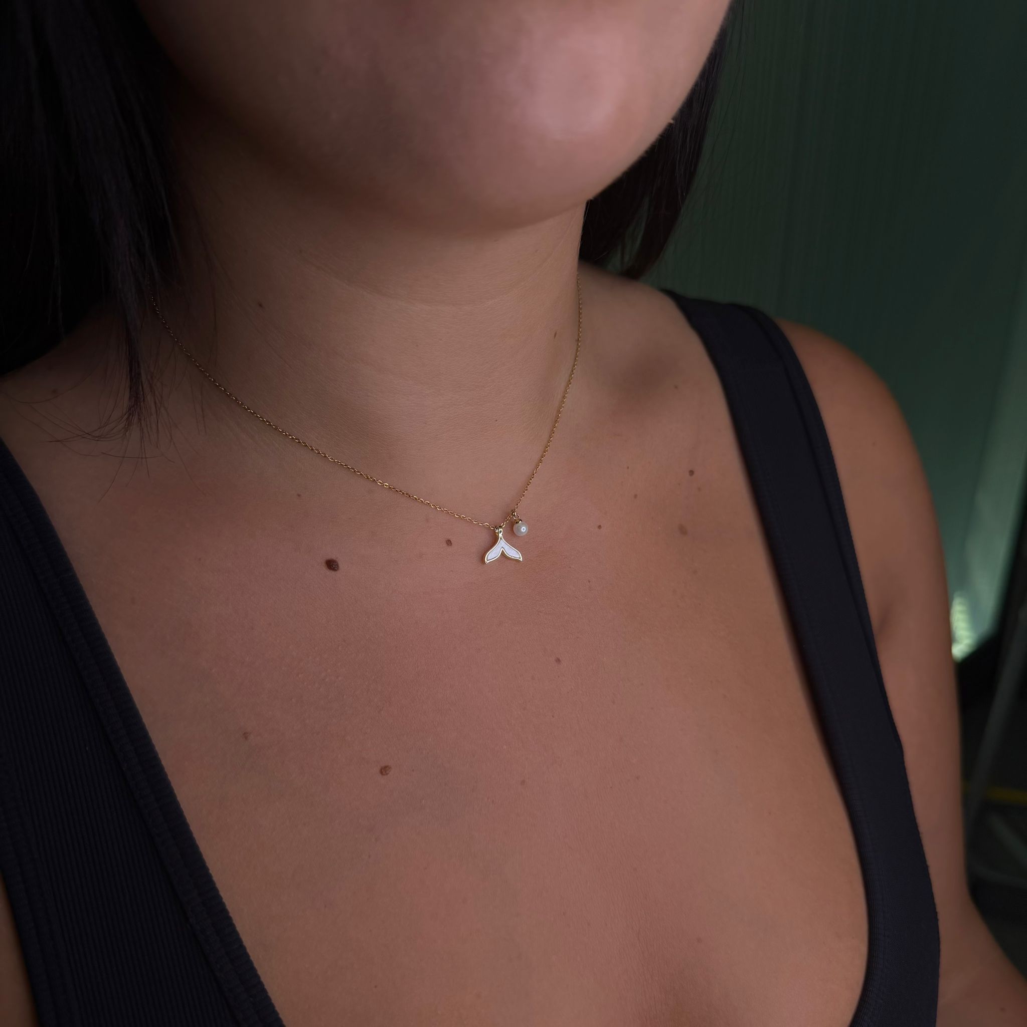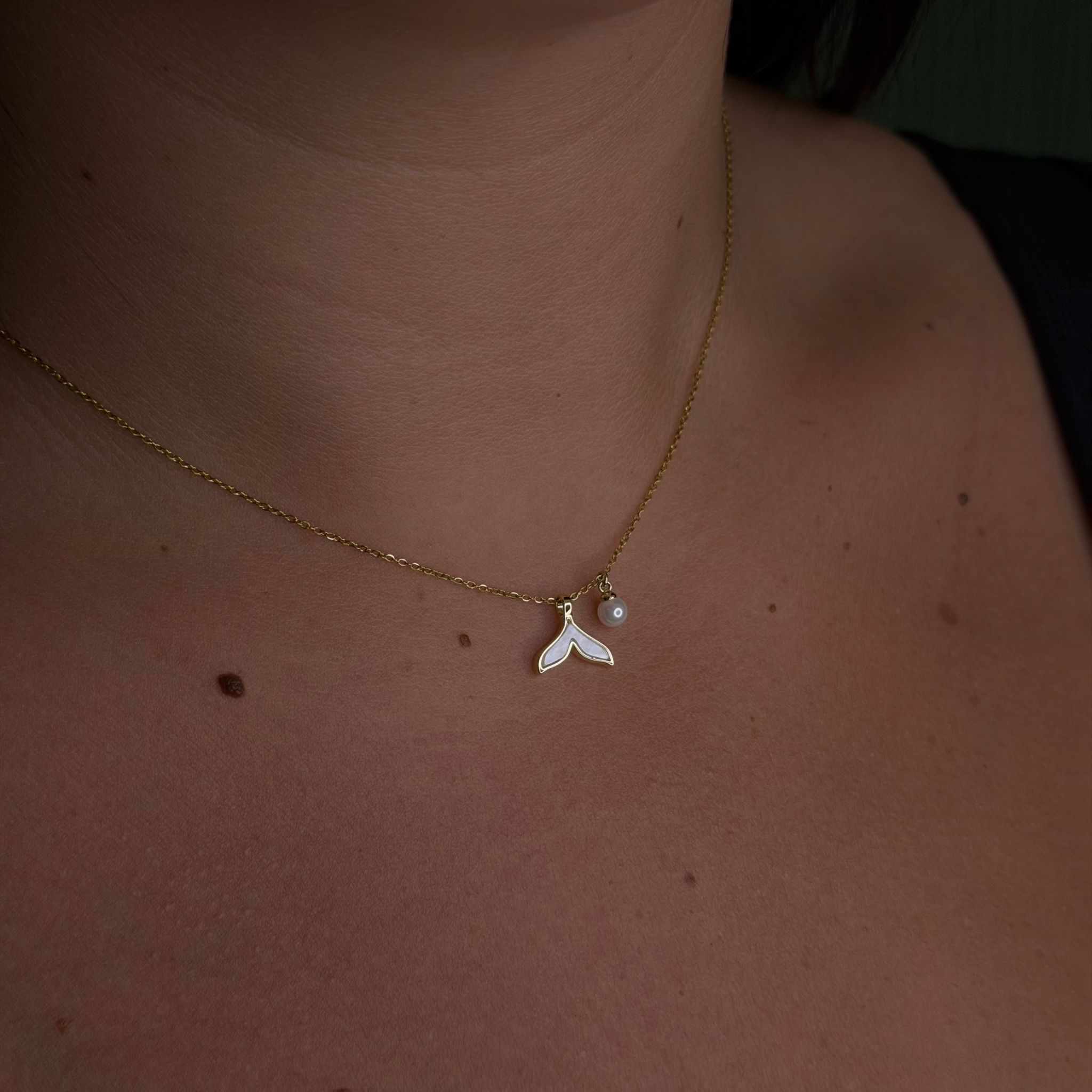 שרשרת סנפיר עם תליון פנינה – שרשרת זהב יוקרתית בעיצוב ים קסום