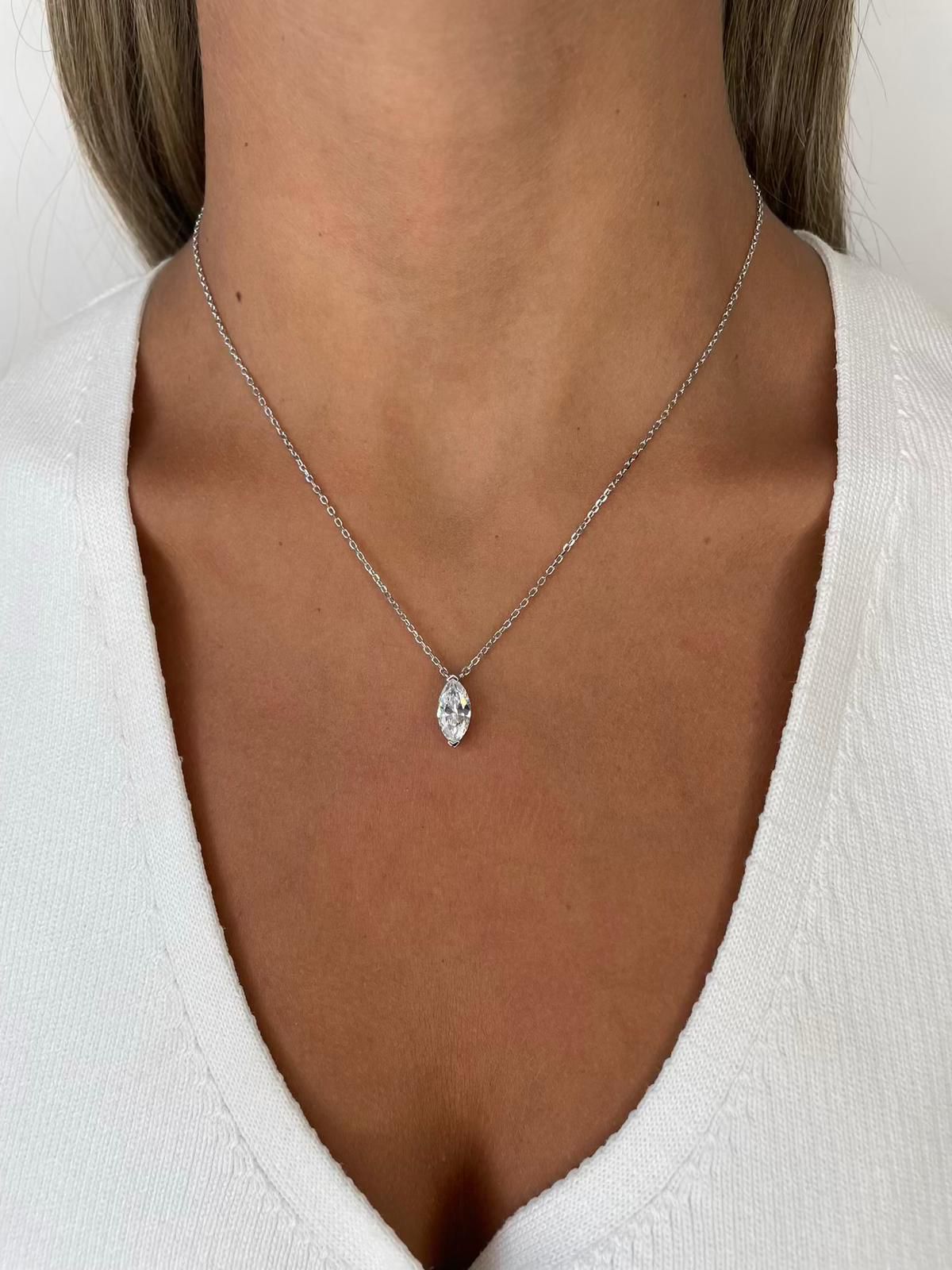 שרשרת תליון זירקון מרקיז כסף 925 – עדינות ונוצצות לכל לוק.שרשרת כסף טהור 925 עם תליון זירקון בחיתוך מרקיז, שמוסיף ברק יוקרתי וניקיון עיצובי. מושלמת לשימוש יום-יומי וליצירת מראה נשי ואלגנטי בכל הזדמנות.